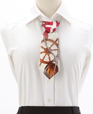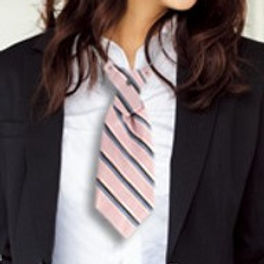 二つ目は、男性に比べ女性スーツ姿は地味で飾り気がなくその原因は女性用のネクタイ(ネックウェア)が存在しないことにありました。